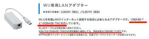 なおこちらのサイトによると、WiiUは1000BASE-Tでは接続できないとのこと。